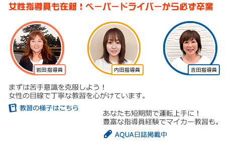 - 経験豊富な有資格指導員が運転のレッスン指導をいたします。